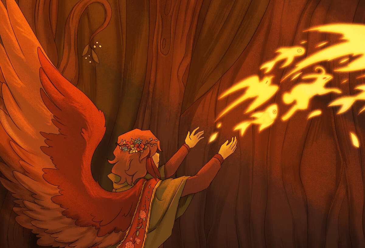 A weary man who recently woke up from a multi-century long coma. He was once worshiped and admired as the Bardic God, but an incident caused him to let down his guard and fall asleep. Feather is used to doing things for his own benefit, reduced to apathy and dissociation to cope with the weight of his past, power hungry self. He enjoys everything to do with fine art, having established grand theaters in his past that are still standing to this day.