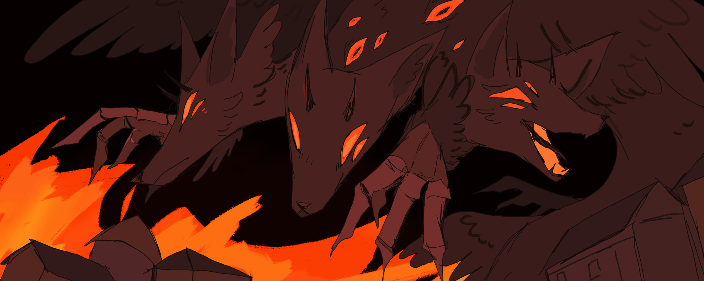 A colorful seaside town in-between mountains and forests, with a little red train that goes right through the middle of town. It’s warm and humid most days of the year, with thick snowfall in the winters. Folktales suggest that this area used to be home to many powerful entities, such as a winged god who favored bards and artists, and two great beasts who fought by his side. The god was said to have an angelic voice, as his performances could heal the deepest wounds and soothe the most disturbed of souls. However, as the years passed, the Bardic God disappeared without a trace, as did his influence on the world, leaving only the town of Bells Harbor to remember his legacy.In modern day, Bells Harbor has been the subject of many concerned articles, detailing the sudden increase in supernatural occurrences. Missing posters are placed all over town as bereaved families cry out for help, as the local authorities have given up, or are too afraid to even try. A mother claiming that a local medical research facility has kidnapped her sickly daughter to experiment on, brushed away by the world as a crazy old lady looking to stir up trouble. As well, more and more townsfolk with physically impossible characteristics begin living amongst the humans. Some have begun praying to the bardic god once more, hoping one day, he returns to bring Bells Harbor back to it's former fabled prosperity.